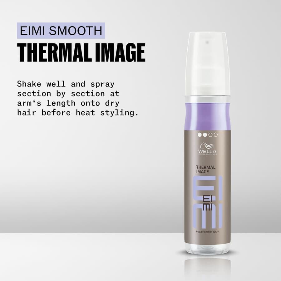 Wella Professionals EIMI Thermal Image Heat Protection Spray er en profesjonell hårspray som er utviklet for å beskytte håret mot varmeverktøy under styling og føning. EIrmal Image gir varmebeskyttelse opptil 220 °C samtidig som den pleier, fukter og gjør håret mykt. Thermal Image har en fruktig duft og hold på nivå 2, lett.